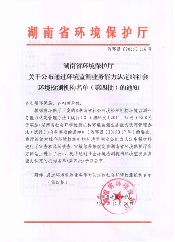 湖南省環(huán)保廳環(huán)境監(jiān)測業(yè)務(wù)能力認(rèn)證